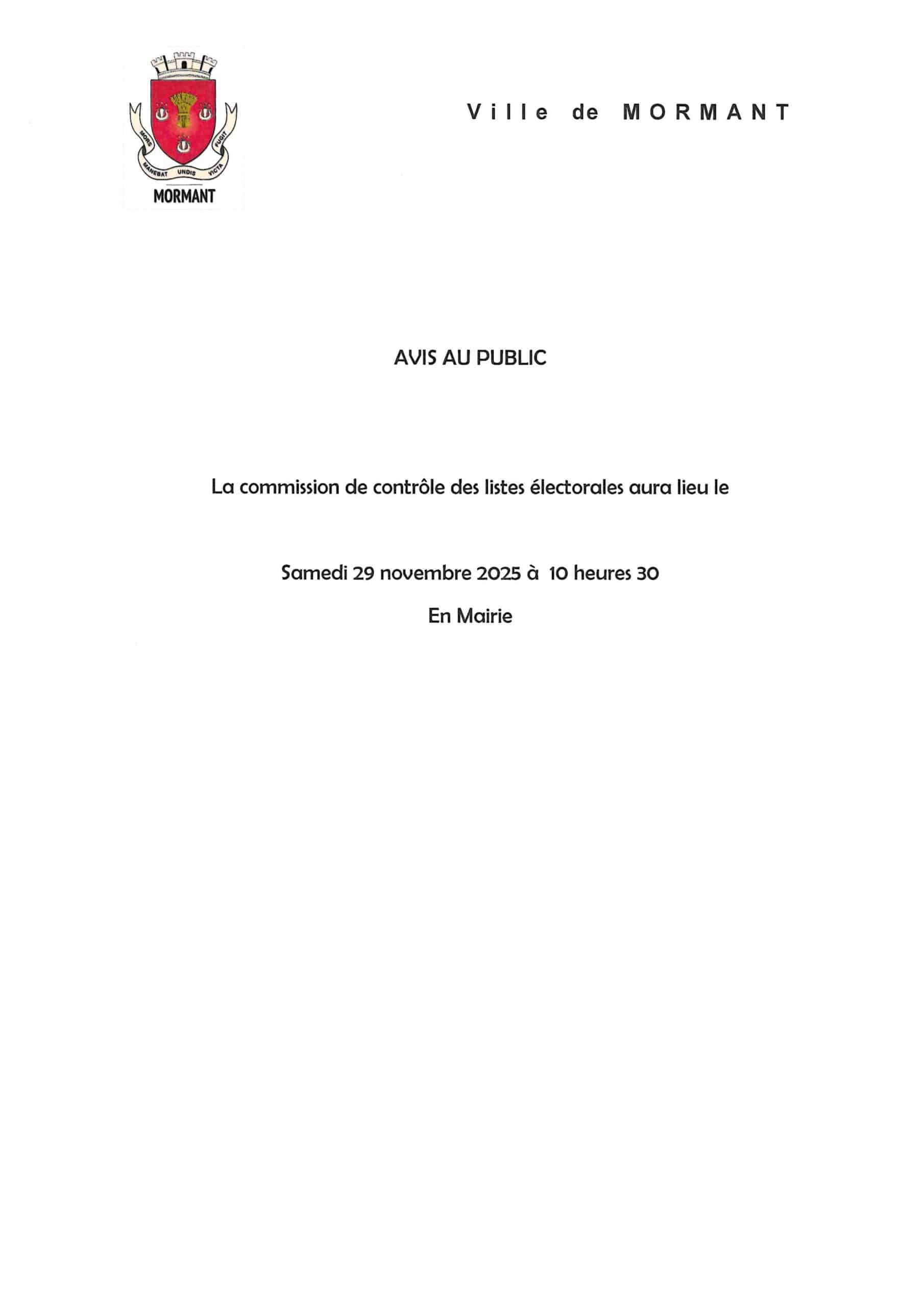 La commission de contrôle des listes électorales aura lieu samedi 29 novembre.